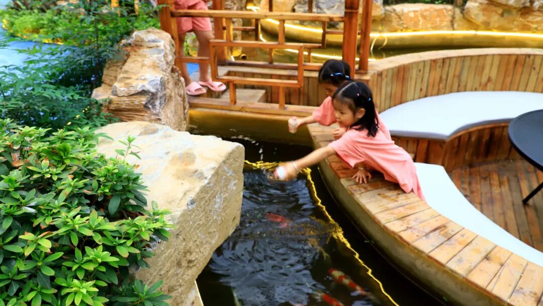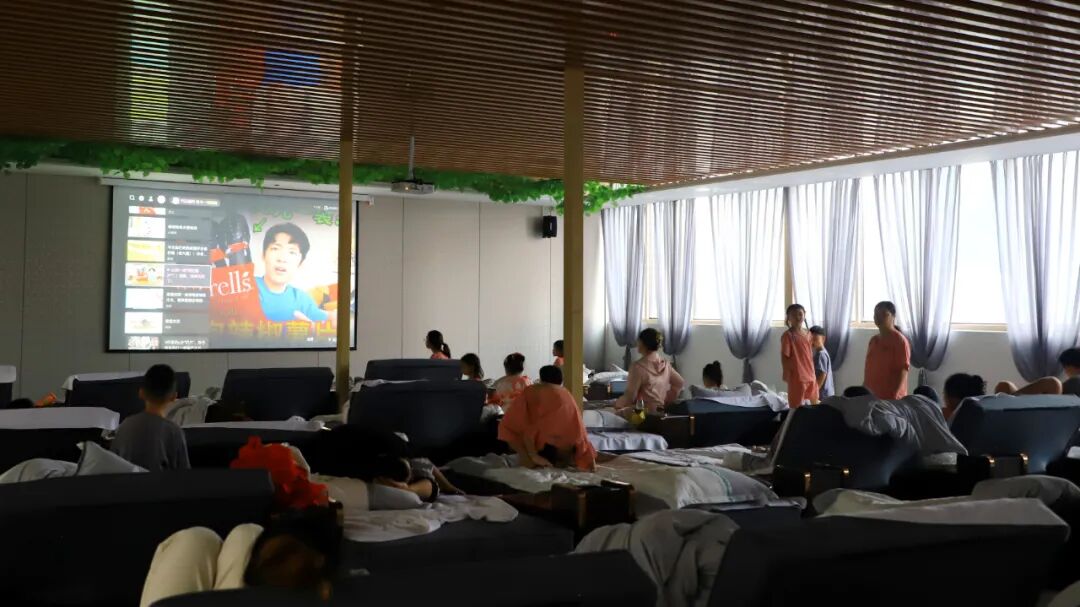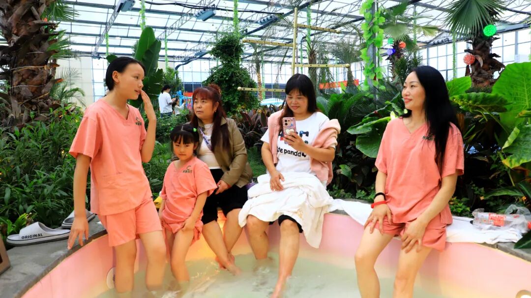 為迎接“雙節”客流,園區在原有設施基礎上豐富了游客體驗內容。親子游戲區內,滑滑梯、蹦床、海洋球池成為孩子們的樂園,家長們則在一旁的室內茶書吧享受露營、品茶的悠閑時光;電玩區、棋牌室、大屏影院等區域同樣人氣高漲,不同年齡段游客都能找到專屬樂趣。國慶期間19.9元/人的高性價比選擇,讓不少游客實現“一站式嗨玩一整天”,推出的48.9元享“浴資+自助餐”優惠套餐更受青睞。