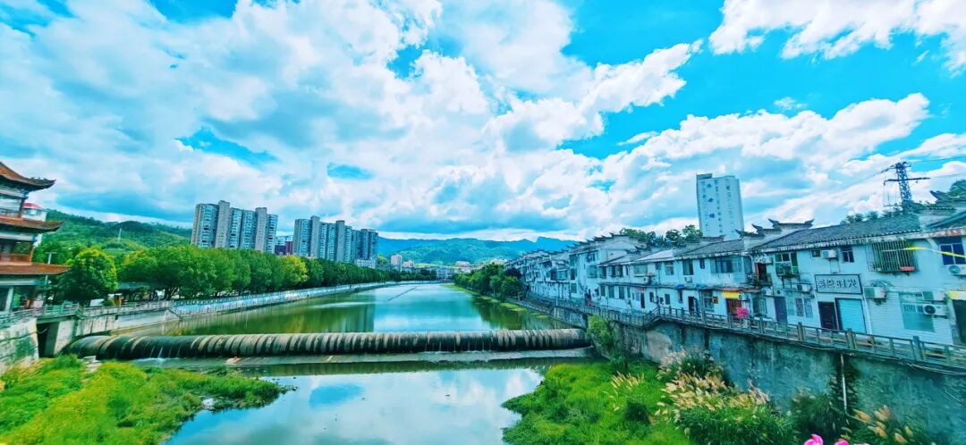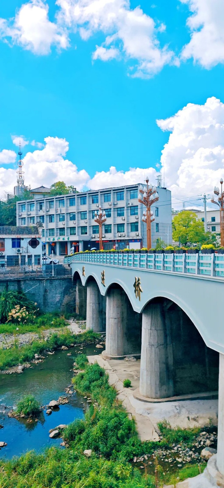 站在橋上,極目遠眺。遠處的山巒連綿起伏,與藍天白云相映成趣,構成了一幅如詩如畫的美景。橋下,河水潺潺流淌,偶爾有小船劃過,泛起層層漣漪,打破了水面的平靜,卻又增添了幾分靈動與俏皮。