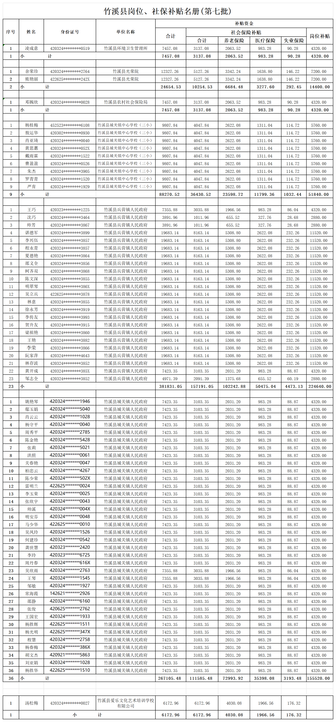 10月9日,竹溪縣公共就業和人才服務局在竹溪政府網發布竹溪縣崗位、社保補貼公示名冊(第七批),擬撥付就業補助資金782948.69元,涉及竹溪7家單位(企業)73人詳情如下: