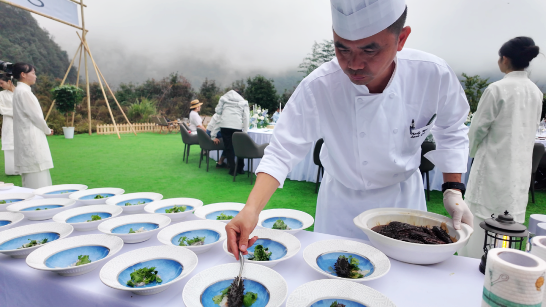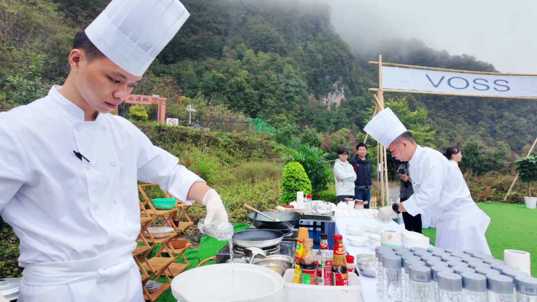 芙絲集團特邀深圳君悅酒店黑珍珠主廚團隊遠道而來,以“源頭食材+芙絲源水”為核心,打造專屬菜單。從高湯熬制到菜品勾芡,每道工序皆以芙絲源水調和,將現代烹飪美學與秦巴風土完美融合,讓食材本味在好水的激發下極致綻放。
