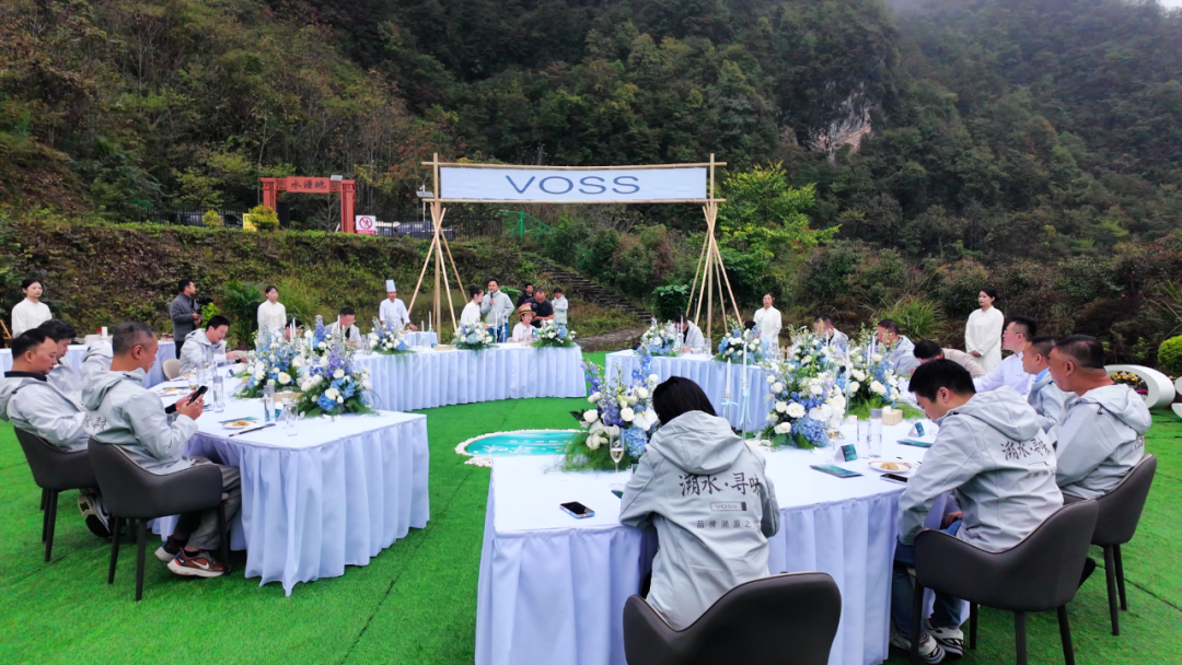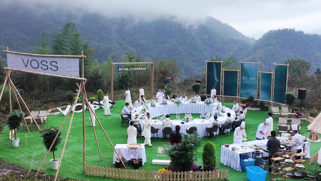 嘉賓們徜徉在山水之間,在潺潺溪聲與清新空氣中細品佳肴,切身體驗芙絲品牌倡導的“好水源頭,自然好味”的健康生活理念。
