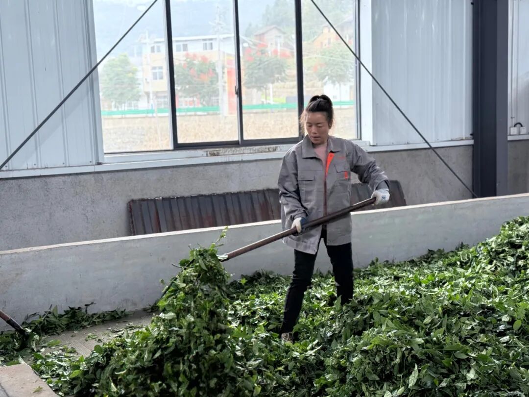 連日來,蔣家堰鎮關埡茶業制茶車間里,機械運轉聲不絕于耳,工人們正有條不紊地對新鮮采摘的秋茶進行殺青、揉捻、烘干等工序,空氣中彌漫著濃郁的茶香,一片片大葉茶在現代化生產線上逐漸成形。