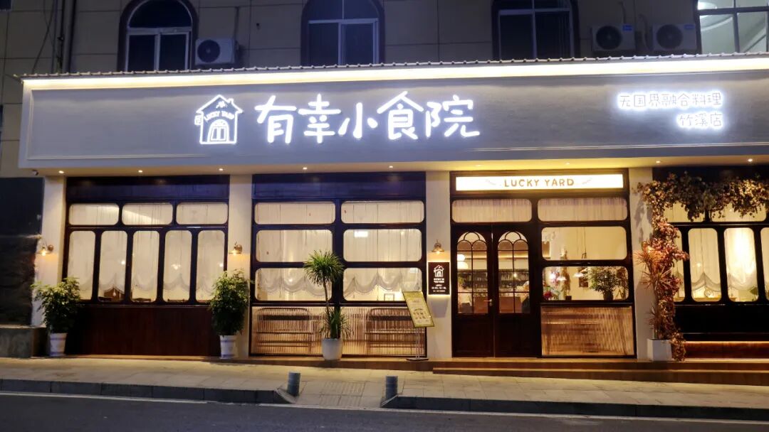 深秋傍晚,暖黃燈光漫出窗欞,從落地窗望出去,竹溪武陵不夜城旁的“有幸小食院”,正流淌著南洋法式的浪漫肌理。190平方米的空間里,原木色桌椅與精致盆栽錯落有致,垂落的玻璃燈罩折射出柔和光暈,將異國風情與竹溪煙火悄悄縫合,藏著獨一份的治愈感。