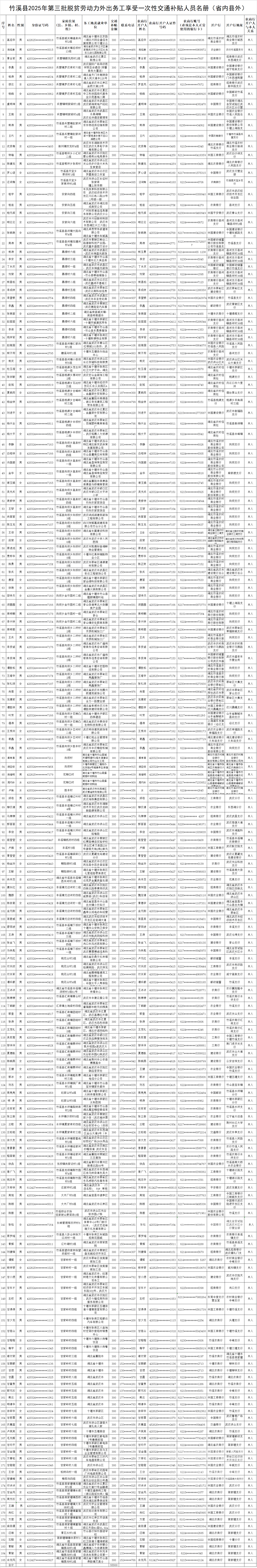 日前,竹溪縣公共就業和人才服務局在竹溪政府網發布竹溪縣2025年第三批脫貧勞動力外出務工人員一次性交通補貼公示(省內縣外)擬撥付一次性交通補貼55500元涉及185人,具體名單如下:
