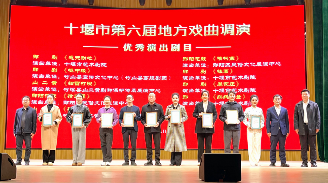 竹溪新聞網訊 記者 段銳 通訊員 袁玉玲 報道:11月12日,十堰市第六屆地方戲曲調演在東風故里俱樂部落幕。在這場匯聚全市7個演出單位、12個精品劇目的藝術盛會中,竹溪縣山二黃劇種保護傳承展演中心選送的傳統劇目《拾玉鐲》《掃雪打碗》,以婉轉的唱腔、精湛的演技和細膩傳神的表演,從眾多優秀作品中脫穎而出,雙雙榮獲“優秀演出劇目”獎項,展現了竹溪地方戲曲的獨特魅力。