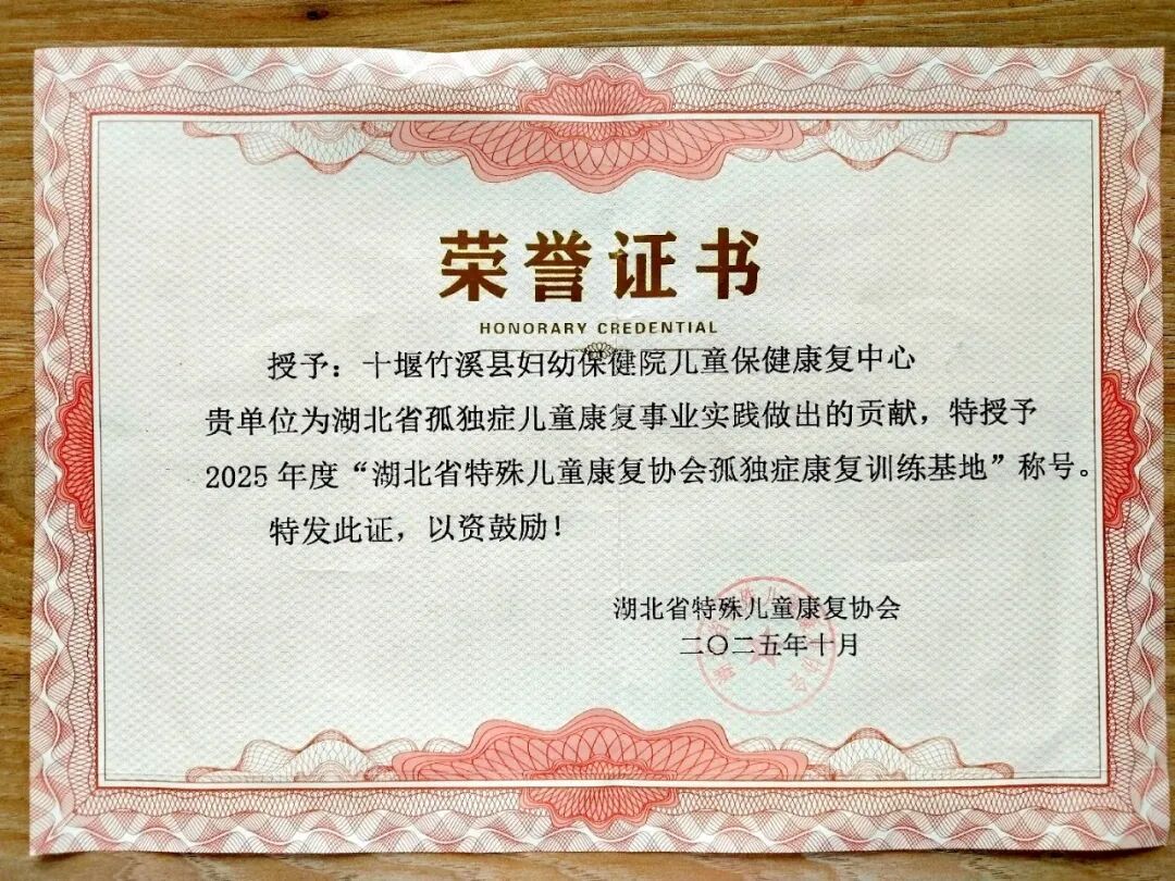 近日,從湖北省特殊兒童康復(fù)協(xié)會傳來喜訊——竹溪縣婦幼保健院兒童保健康復(fù)中心榮獲2025年度“湖北省特殊兒童康復(fù)協(xié)會孤獨癥康復(fù)訓練基地”稱號,這已是該中心自2020年起,連續(xù)第六年獲此殊榮,詳情如下: