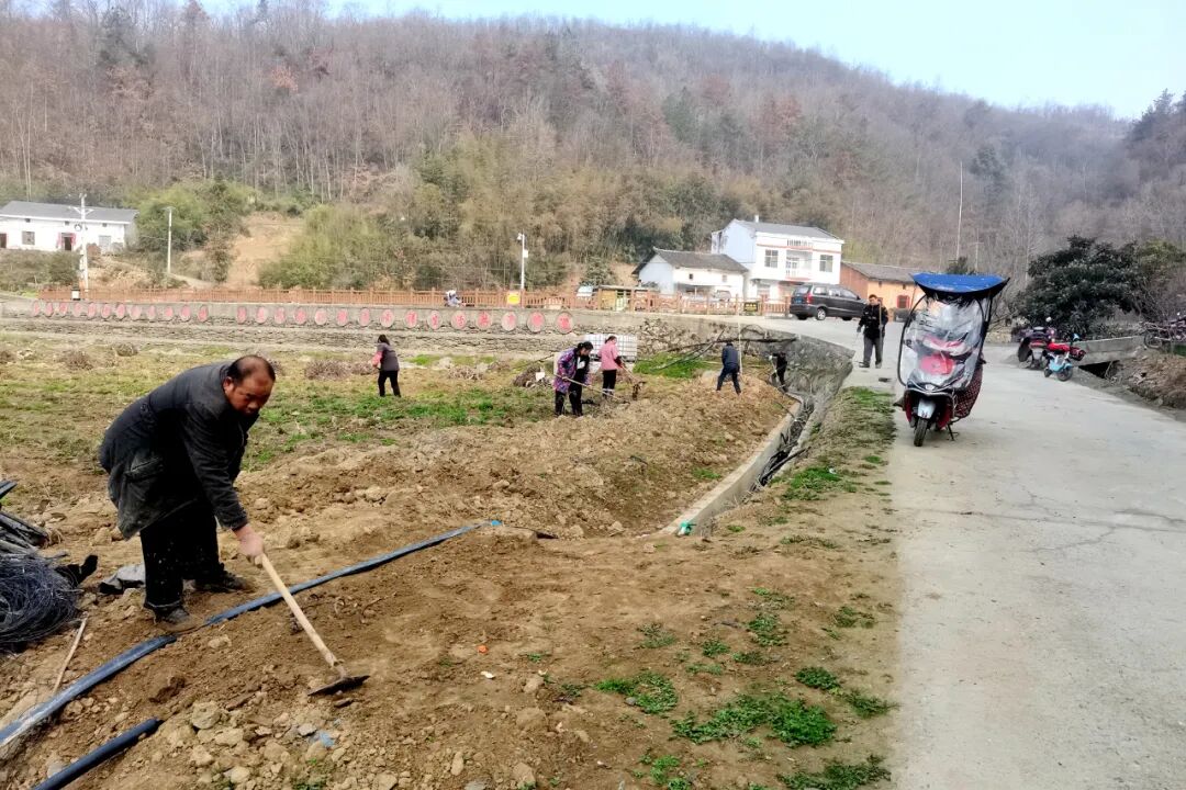 在明家灣蔬菜種植基地,放眼望去,十余名村民分工明確、忙而有序,有的翻地、有的挖溝、有的育苗,一幅繁忙的勞作景象映入眼簾。