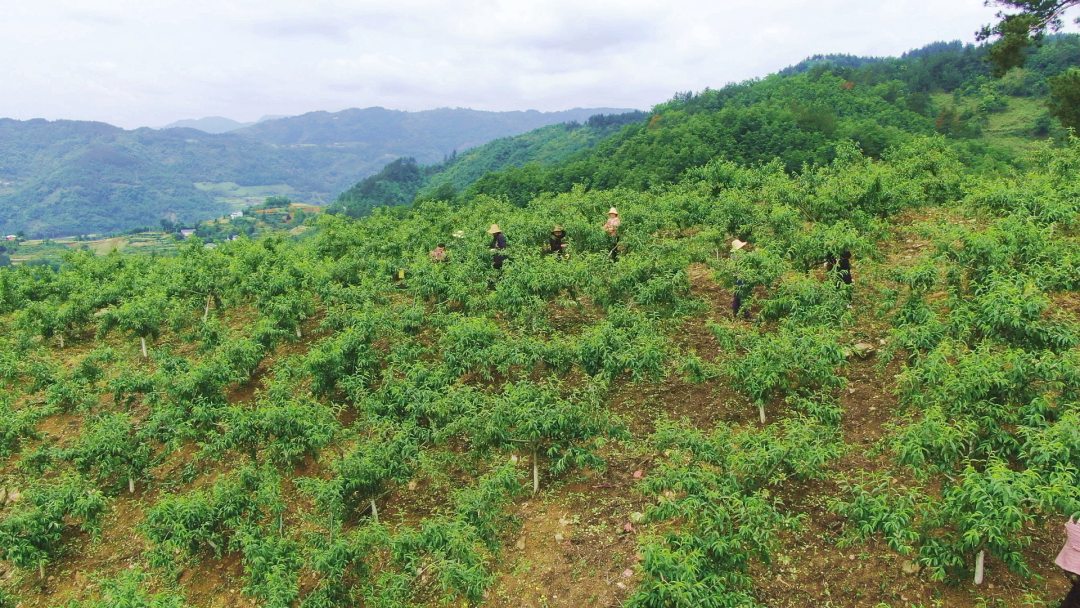 (全媒體記者 王意周 通訊員 甘滕飛)五月的新洲,滿山翠綠。在魯溪溝村金獅嶺桃園基地里,工人們正忙著給桃樹疏果,清除畸形果、小果、病蟲果,有效提高掛果品質,增加果實的單果重、含糖量及果實著色,保證樹體連年豐產。