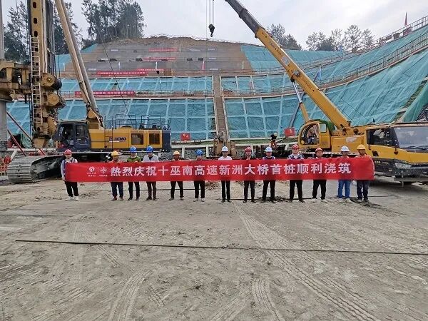 5月25日上午7時30分許,經過10個小時的緊張施工,十巫南高速公路新洲特大橋首根樁基完成澆筑,本次共澆筑混凝土550方。