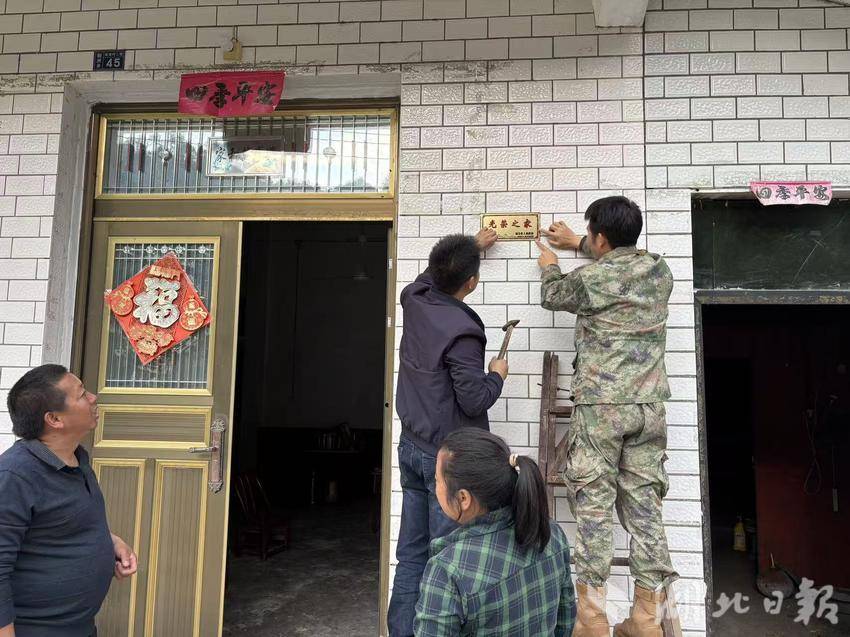 該鎮武裝部、退役軍人服務站等工作人員懷著敬意,將滿載榮譽的牌匾鄭重懸掛在每一戶新兵家門口。這不僅是軍人身份的光榮印記,更是軍屬默默支持與無私奉獻的崇高象征。小小的牌匾,承載著“一人參軍、全家光榮”的深厚情誼,連接著軍營與家鄉的共同榮耀。