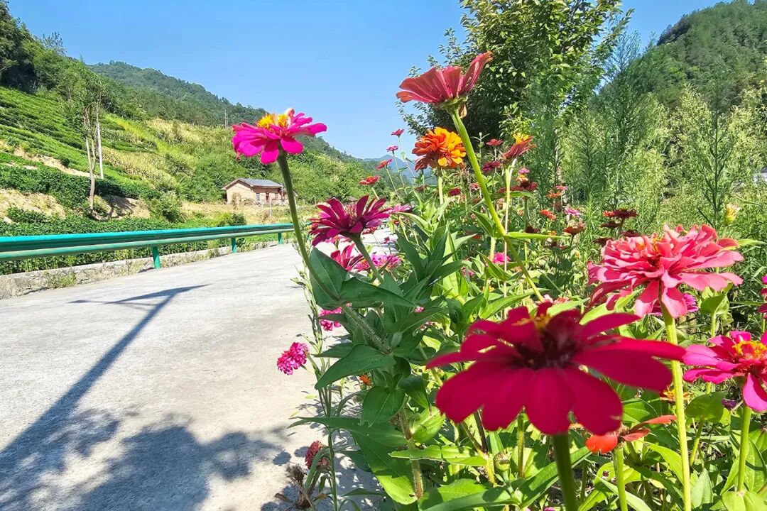 八月初秋,走在兵營鎮四條溝村,藍天白云相映成趣。路邊,五彩斑斕的花朵在微風中搖曳生姿,它們用絢爛的色彩裝點著鄉間小路。