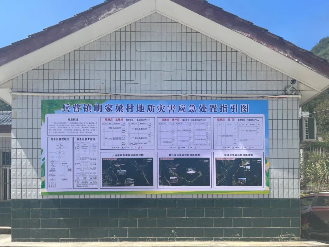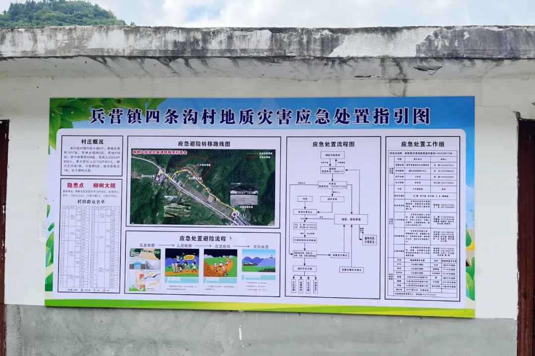 現在,在兵營鎮10個行政村,村村都有一張地質災害應急處置指引圖。這張圖以各村實際為藍底,囊括了災害點人員基本情況、應急處置流程、逃生路線等內容,通過“掛圖作戰”,生動形象地將處置程序“任務清單化、清單流程化、流程規范化”,讓群眾熟悉避險“竅門”與“路線”,關鍵時刻成為保障群眾生命安全的護身符。