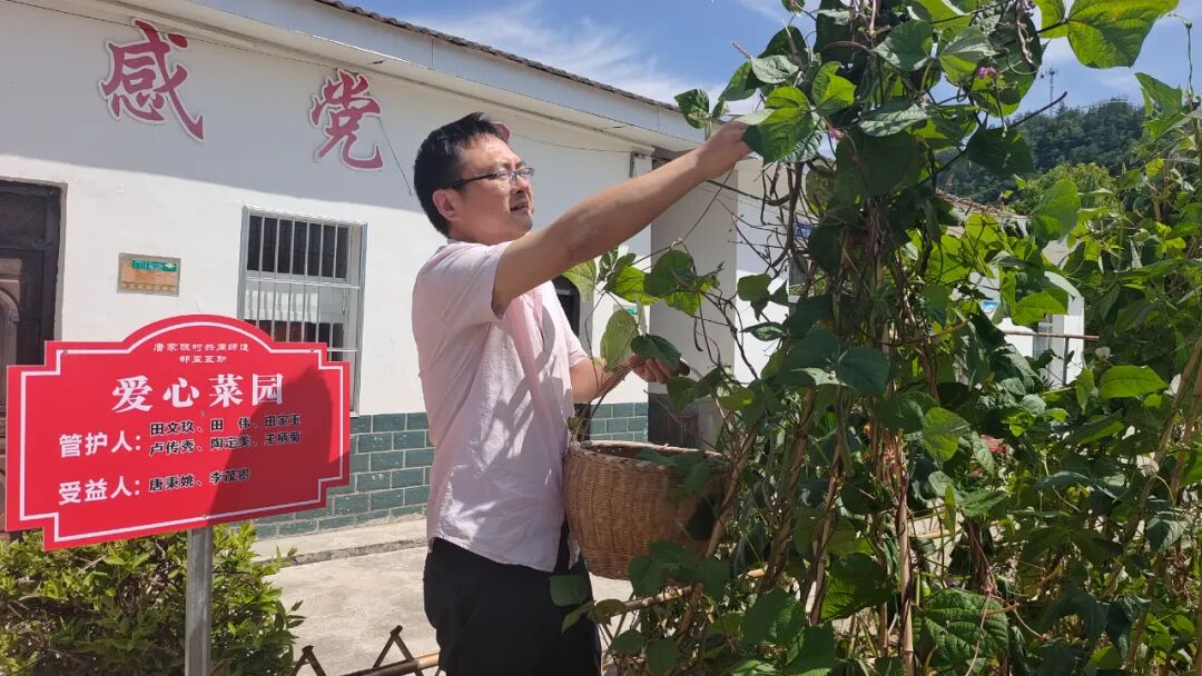去年初,村 “兩委”了解新搬到安置點的無勞動能力孤寡老人吃菜難,立即組織黨員干部帶頭整理出閑散菜地,起名“愛心菜園”,并將“愛心菜園”作為主題黨日活動的延伸,把收獲的蔬菜分送給村里無勞動能力的弱勢群體。隨著“共同締造”活動的開展,更多的村民也參與到“愛心菜園”種植、管護上來。眼下,一壟壟豆莢、黃瓜掛滿藤架,茄子、辣椒等蔬菜長勢喜人。