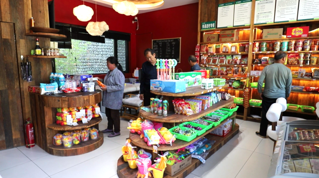 村里的“積分超市”熱鬧非凡,玻璃門開合間洋溢著村民們歡快的談笑聲,貨架上整齊擺放著米面糧油、日化用品等生活物資,志愿者正手腳麻利地清點積分卡,為村民兌換相應物品。