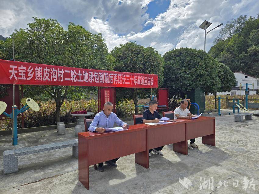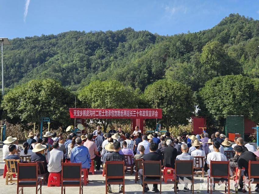 據了解,天寶鄉自二輪土地承包到期后再延長三十年試點工作啟動以來,成立工作專班,進村入戶走訪摸底,召開黨員會、戶院會、村民代表會、群眾大會等多形式向村民講解二輪土地承包到期后再延長三十年工作的政策要求,并耐心解答疑問,回應訴求。同時,利用村級微信群、朋友圈、視頻電話、“村村響”廣播等方式進行線上宣傳,將二輪土地承包到期后再延長三十年政策全方位解讀明白,讓群眾自覺參與到延包工作中來。