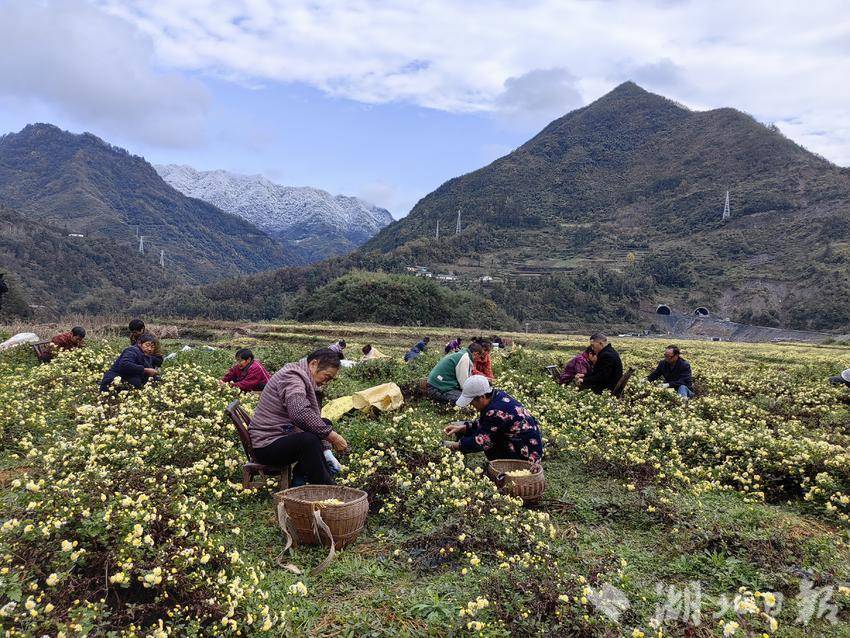 “在家門口采菊花,既能掙工錢,年底還能拿分紅,這樣的好事打著燈籠都難找!”天寶鄉孔雀村的菊花種植基地里,金黃的菊花朵朵飽滿、香氣襲人,53位村民正忙著采摘、分揀、裝籃,歡聲笑語飄蕩在田間地頭,一派熱火朝天的豐收景象。11月18日,村民們陸陸續續來到菊花基地,手腳麻利地將一朵朵優質菊花收入籃中,這些新鮮菊花將被集中運往加工基地,經過消毒、烘干、精選等工序制成高品質菊花茶,通過線上線下多渠道銷往各地。